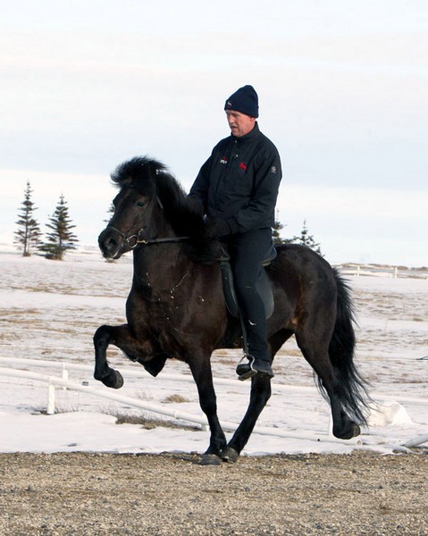 Dimmu frá Miðfelli kynntist ég á fimmta vetur þegar ég gerði hana reiðfæra þá um vorið fyrir þáverandi eiganda. Ég gleymi aldrei fyrstu skiptunum sem ég reið henni, því sjaldan eða aldrei hafði ég kynnst öðrum eins krafti hjá ótömdu trippi, samt svo meðfærileg, fótaburðurinn strax gífurlega mikill og hún vakti athygli hvar sem hún fór. Alltaf var hún fús að vinna með mér og bauð uppá mikið, en ég hugsaði alltaf um að varðveita og hafa vit fyrir henni því ég hafði grun um að ef ég myndi seilast of langt, þá kæmi það í bakið á mér seinna meir. Okkar kynni urðu ekki lengri en einn og hálfur mánuður en ég hafði alltaf sterkar taugar til hennar og fylgdist með henni úr fjarlægð. Það gekk ekki sem skildi með hana og á endanum fór hún í folaldseign. Mörgum árum seinna hitti ég eigandann á förnum vegi fyrir algera tilviljun og hann tjáði mér það að hann væri búinn að losa sig við flest hrossin og þ.a.m. Dimmu, hún væri á leiðinni til Þýskalands!!! Ég fann bara hvernig kalt vatn rann milli skinns og hörunds og sagðist bara ekki trúa þessu, hann hefði bara alls ekki ætlað að selja hana og hvers vegna í and****** hann hefði ekki látið mig vita fyrst því hann vissi um áhuga minn á henni. Maðurinn varð kindarlegur og sagði svo, hún væri ekki farin og það væri kannski sjens að rifta kaupunum sem var gert!