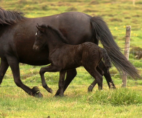 | Zara frá Álfhólum, fædd 2004 Svört Faðir: Eldvaki frá Álfhólum Upprennandi keppnishryssa í eigu Mariu Greve á Íslandi. | |