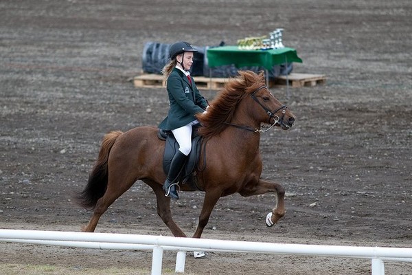 | Trú frá Álfhólum, fædd 2000 Rauð. Seld. Faðir: Eldvaki frá Álfhólum Sýnd í kynbótadóm með 7.81 í aðaleinkunn. Trú er skrefmikil klárhryssa hefur verið í keppni á höfuðborgarsvæðinu með ágætum árangri. Hún býr yfir góðum grunngangtegundum, fékk m.a 9 fyrir stökk. | |