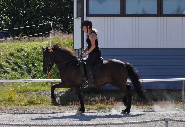 Díana 2j mán tamin. | Díana frá Álfhólum, fædd 2001 Dökkjörp Seld til Svíþjóðar. Faðir: Pegasus frá Skyggni Díönu var ég svo vitlaus að láta frá mér ótamda. Myndarleg alhliða hryssa með mikinn fótaburð. Seld til Svíþjóðar ósýnd. |