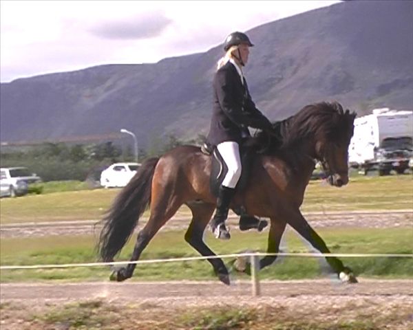 | 1. verðlauna stóðhestur. Jarpur, fæddur 1996. Faðir: Ögri frá Hvolsvelli Móðir: Reykja frá Álfhólum Héraðssýning á Sörlastöðum 2002: Bygging: 8.13 Hæfileikar: 8.27 Aðaleinkunn: 8.21 Seldur til Swiss í Janúar 2009. Nýr eigandi er Jeannine Burgdorfer. |